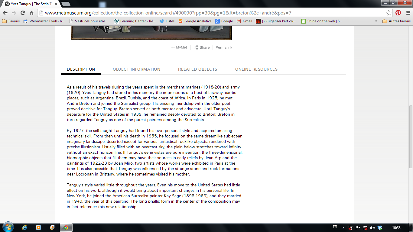 Le Metropolitan Museum of Art prévoient des fonctionnalités de partage de sa collection en ligne. Ainsi, l’utilisateur peut très facilement partager une oeuvre de la collection en ligne sur les réseaux sociaux suivants : Facebook, Twitter, Pinterest et Tumblr – ce dernier étant avant tout une plate-forme de blogging-. ↓